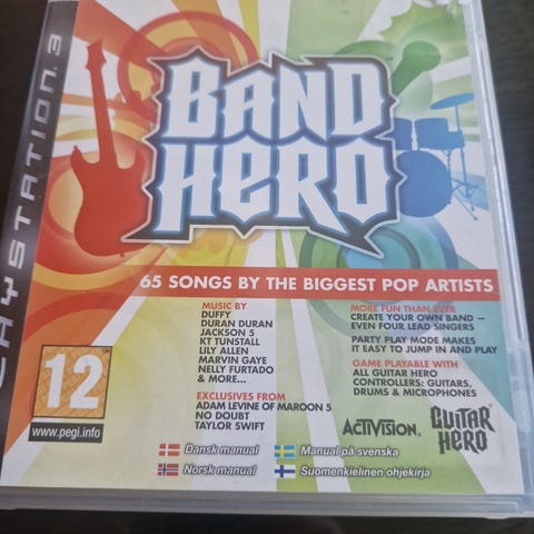 Band Hero PS3 peli. Sisältää 65 kappaletta eri pop-artisteilta.