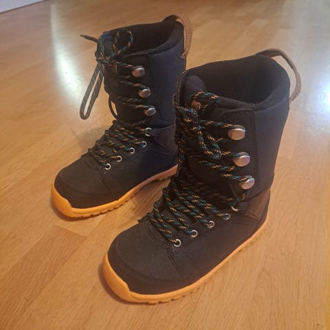 Hyväkuntoiset WARP lumilautamonot kokoa 34. Sisämitta kenkämitalla mitattuna n. 21,3cm. Vähäistä normaalia käyttökulumaa.