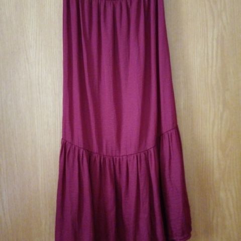 Gina Tricot punainen hame, koko L. Valmistettu kevyestä materiaalista, sopii naisille. Hameessa on joustava vyötärö ja se on pitkä malliltaan.Vekkimalli.