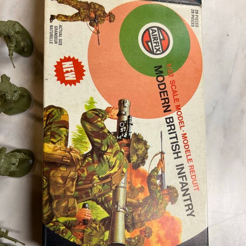 Airfix German Infantry muoviset sotilashahmot, yhteensä 29 kappaletta. Mukana erilaisia sotilaspatsaita, jotka esittävät saksalaisia jalkaväen sotilaita. Sopii keräilyyn tai sotaleikkeihin.