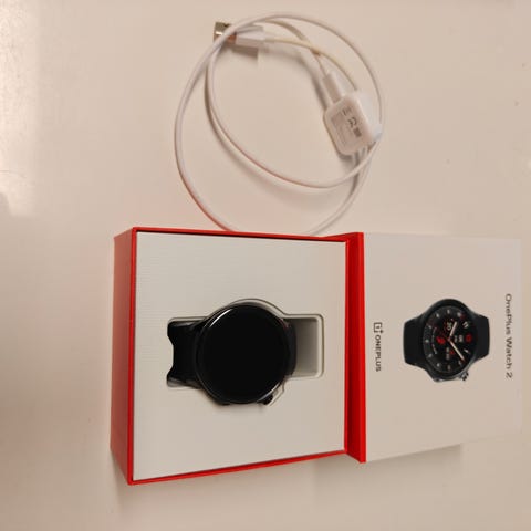 OnePlus Watch 2 älykello, jossa on pyöreä näyttö ja vihreä silikoniranneke. Kellossa on useita sovelluksia ja ominaisuuksia, kuten ajan näyttö, terveys- ja kuntoiluseuranta. Takapuolella on anturit sykkeen mittausta varten. Sopii päivittäiseen käyttöön ja urheiluun.