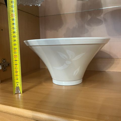 Tarjoiluastia korkeus 9 cm ja halkaisija 20 cm