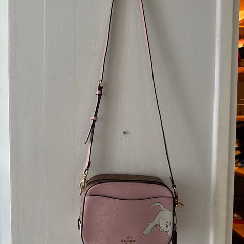 Coach nahkainen olkalaukku ruskeassa värissä. Laukussa on säädettävä olkahihna, kultaiset vetoketjut, 2 lokeroa ja sisätasku. Edessä Coachin painettu logo. Upea tilaihme.