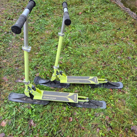 Stiga lasten potkukelkka, jossa on pehmustettu istuin ja ohjaustanko. Kelkan runko on keltainen ja liukupinnat mustat. Sopii lasten talviaktiviteetteihin lumella liikkumiseen.