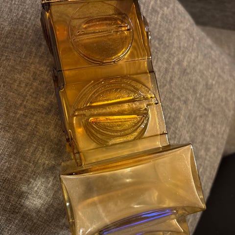 Kumela&Sarpanevan vihreä pitsireunainen lasimaljakko. Viimeisissä kuvissa näkyy kaksi pientä virhettä yläreunan sisäreunoissa