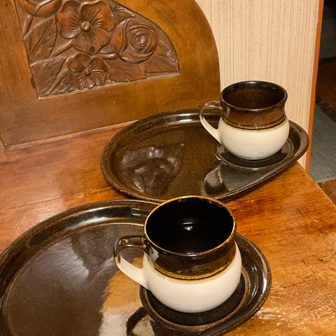 Settiin kuuluu lautanen ja muki, väri vihreä. Soveltuvat päivittäiseen käyttöön. On pesty koneessa. Yhteishinta.
