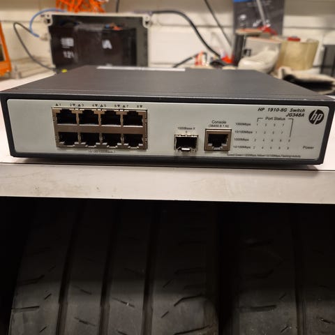 HP 1410-8G kytkin, jossa on 8 porttia ja musta väri. Laite on tarkoitettu verkon laitteiden yhdistämiseen ja hallintaan. Mallinumero 19559A. Sopii pieniin ja keskisuuriin verkkoihin.