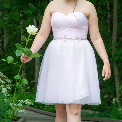 Zazabella juhla- tai rippimekko vaaleanpunaisena, koko 38. Mekossa on ohuet olkaimet ja korsettimainen yläosa, jossa on nyöritys takana. Materiaali polyester. OVH 289€. Ostettu uutena, kerran käytetty! Hintaa saa tarjota.