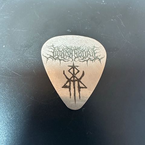Lorna Shore logolla kitaran plektra laserkaiverruksella – molemmin puolin