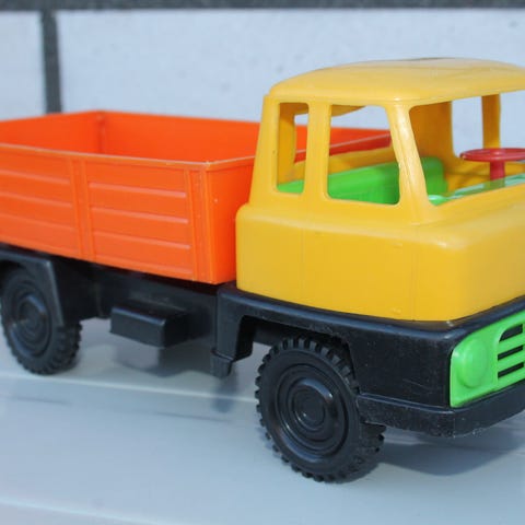 Myydään 70-luvulla Länsi-Saksassa valmistettu vanha isokokoisempi Scania lava-mallin kuormuri . Pituus noin 27cm ja käsittääkseni samaa mittakaavaa kuin kotimaiset EMEK muovirekat. Valmistaja Wader. Ollut uudesta saakka hyllyssä, joten ulkoisesti ikäisekseen varsin hyvässä kunnossa. Huomaa aidot peltiset vanteet. Kippaava lava ja aukeava takalaita. Lava voi helposti irrota kipattaessa, koska rungon lavatapit ovat hieman liian ohkaiset lavan kiinnityskoukkuihin nähden, ominaisuus joka on näissä useimmissa. muovi auto rekka kuormuri leikkiauto leluauto veturi pienoismalli keräilyauto rekka-auto retro keltaine hiekka hiekkalaatikko lelu muovinen 70-luvun saksalainen