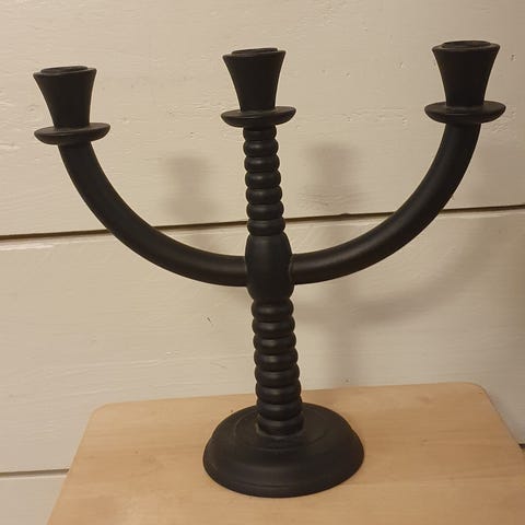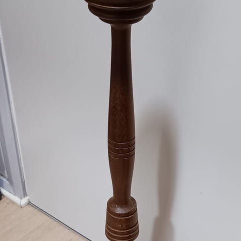 Paavo Asikaisen punainen, puinen Korupuu-kynttilänjalka, luultavasti 70-luvulta.
