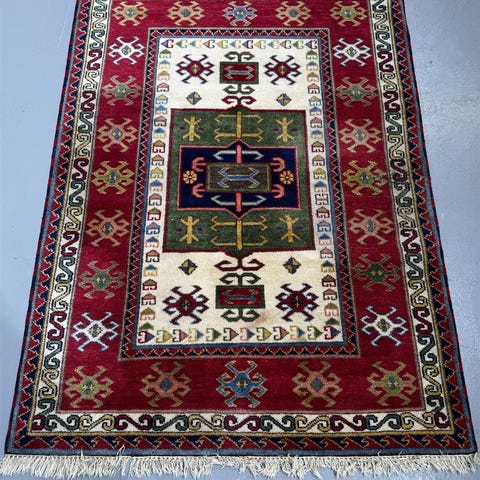 Aito kazak käsinsolmittu itämainen matto. Tehty käsityönä Pakistanissa. Ei käytetty melkein yhtään, ei sopinut uuteen asuntoon, joten myydään pois.