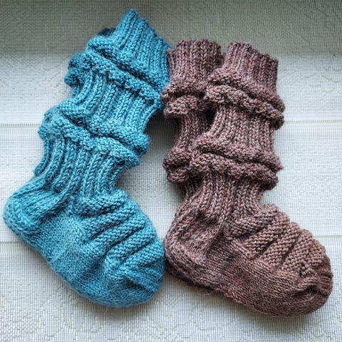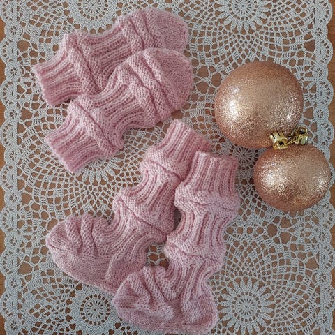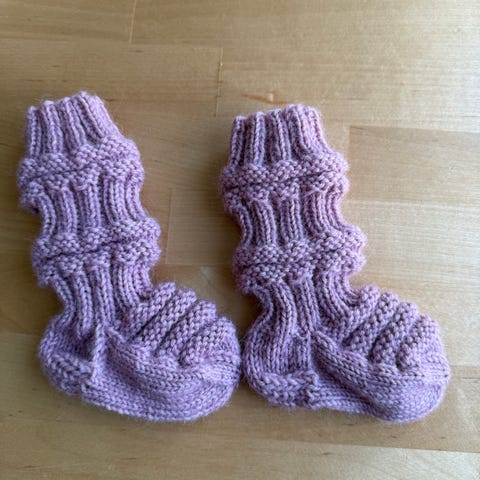 Perheen pikkutontuille junasukat Novita Nalle langasta neulotut, pienimmät kirjavasta langasta ja isommat yksivärisestä punaisesta.