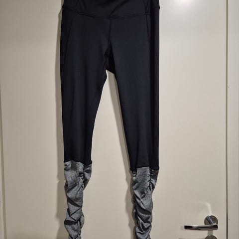 Erinomaisessa kunnossa olevat Danskin-merkkiset treenitrikoot koossa 40. Vastaavat hyvin kokoaan. Väri on tummempi sininen kuin kuvissa. Vasemmassa lahkeessa reisitasku puhelimelle ja alempana sivuilla koristeelliset yksityiskohdat.