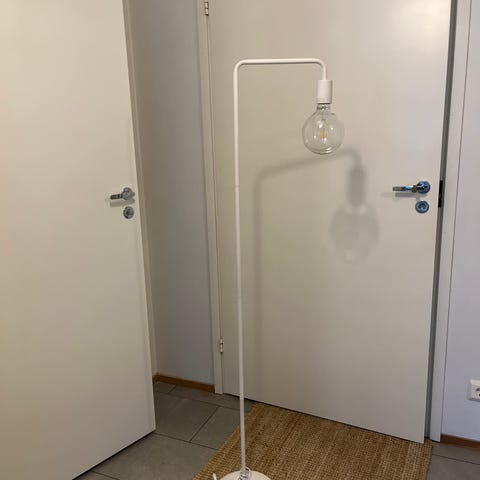 Tripod-jalkainen lattiavalaisin valkoisella varjostimella