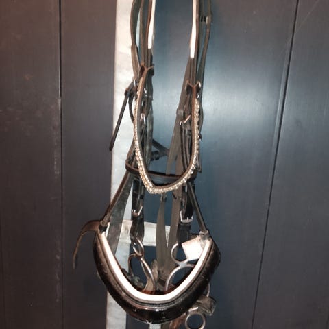 Vähän käytetyt ruskeat suitset. Ruskeat kangasohjat messinkisillä lukoilla saa mukaan.