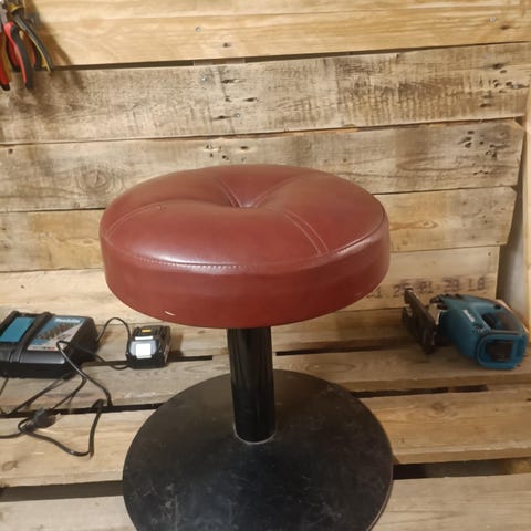 Itse n. 15v sitten sohvan aidosta nahasta tehty pieni nahkapalli. Väri tummanruskea, runko lastulevyä. Jämerä ja hyvä istua. On vähän kulunut mutta saanee nahan hoidolla paremmaksi.