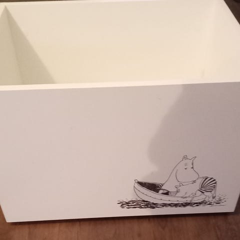Muumi säilytyslaatikko jäänyt lasten kasvaessa tarpeettomaksi ja etsii uutta kotia.