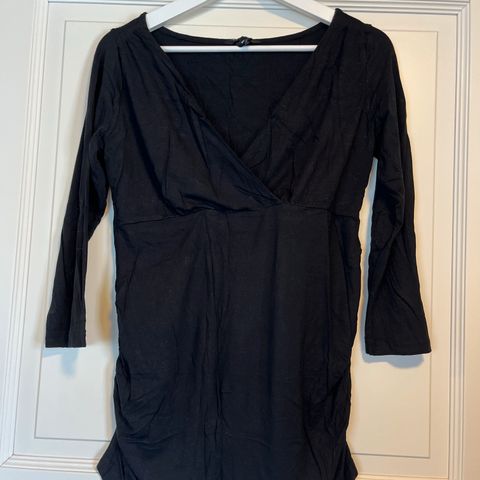 H&M musta paita, jossa perhosia, äitiyspaita, M koko. Ehjä, pientä pesuhaitua.