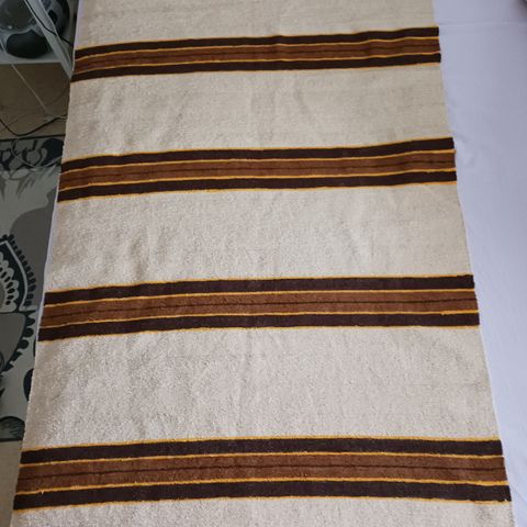 Myydään käyttämätön, raidallinen poppanamatto/päiväpeitto 126 cm x 220 cm. Kuva vääristää jonkin verran värejä. Hinta 50 euroa. Voin lähettää tuotteen, jolloin lähetyskulut ostajalle.