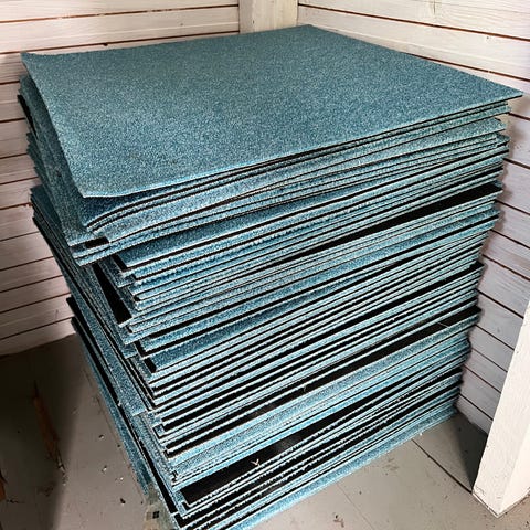 Ylimääräiseksi jäänyttä tekstiililaattaa. 50cm x 50cm ja 24kpl eli yht 6m2. 15€/m2. Sijaitsee Ylöjärvellä, omien menojen mukaan kulkeutuu Tampereen alueelle.