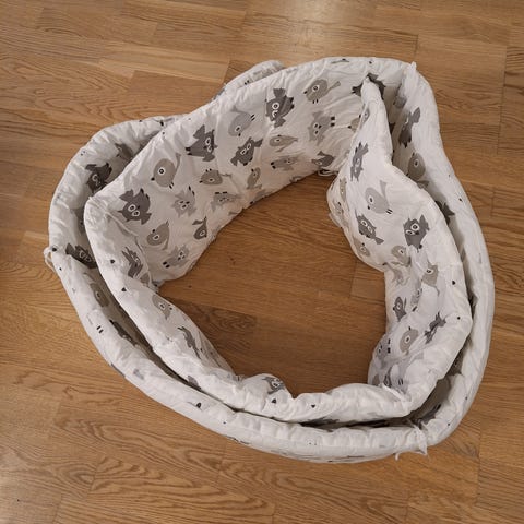 Myydään hyvä ja siisti Anne & Mikael -reunapehmuste pinnasänkyyn.