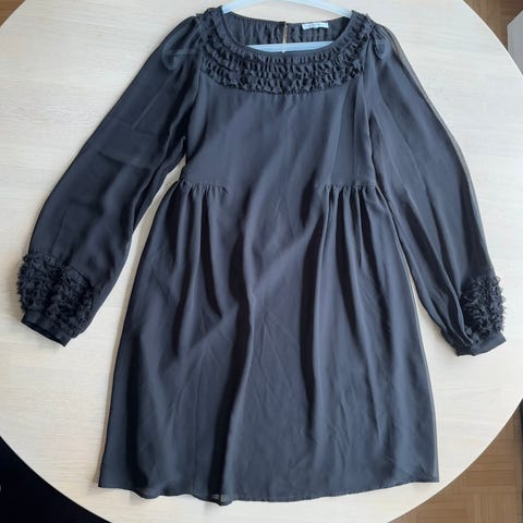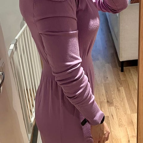 Cristelle & Co:n violetti pitkähihainen mekko, jossa koristeellinen yläosa. Pehmeää mukavaa materiaalia. Väri viimeisessä kuvassa vastaa lähinnä todellista väriä (tumma lila)