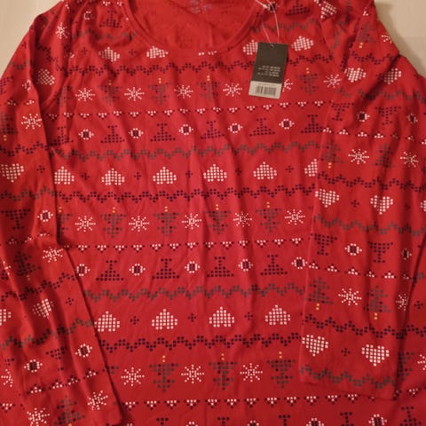 Uusi ja käyttämätön aikuisten yöasu -setti, paita ja housut jouluteemalla. Koko L. Myyn, koska koko ei ollut oikea.