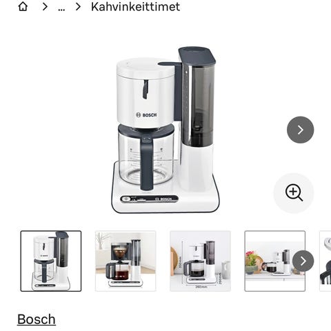 Myydään erittäin hyväkuntoinen Bosch Styline TKA8013 -kahvinkeitin. Kaikki osat ja varaosat mukana, toimii moitteettomasti ja on pidetty siistissä kunnossa.