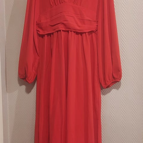 Kauniilla kietaisuleikkauksilla koristeltu punainen minimekko pitkillä hihoilla. Joustavaa materiaalia. Uusi!😊