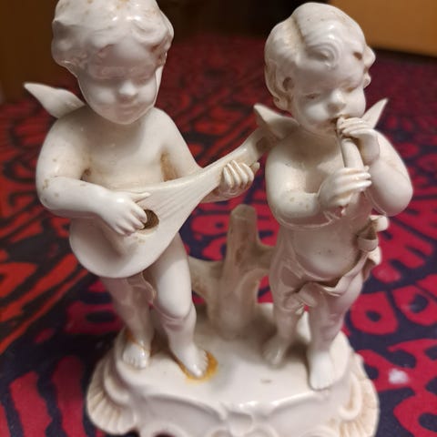 Enkeli koriste 1960-70 luvulta jossa soitto mekanismi, toimii. Toinen käsiterä katkennut muuten ehjä. Väri kellertävä, kullan värisillä koristeilla. Väri luultavasti tummunut alkuperäisestä. Materiaali jokin muovi tms. Sekoite. Korkeus 16 cm. Nouto tai postitus 8,90€