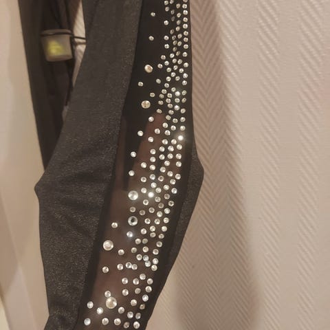 Uudet mustat legginsit, joissa sivussa pitsikoristukset.