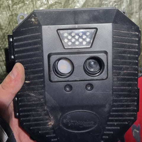 Wildgame innovations merkkinen riistakamera. Ollut pihalla kesällä muutaman vuorokauden, mutta muuten ollut sisällä laatikossa käyttämättömänä.