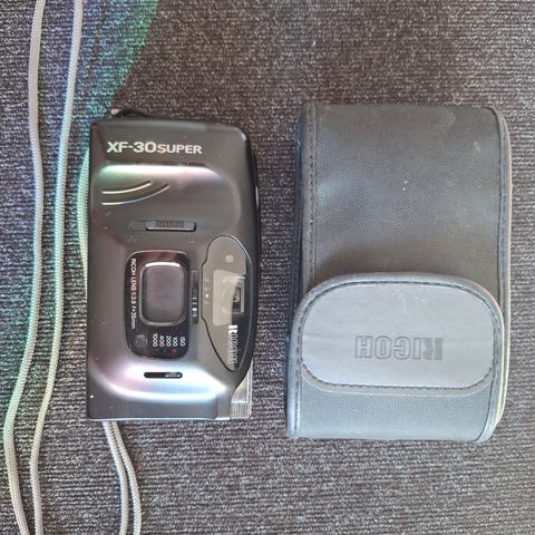 Kuvan kamera laukkuineen. Vaatii vähän huoltoa tuo takakansi ei pysy kiinni vaikkei näy mitään rikki olevan mutta jotain vikaa on ei siis takuuta