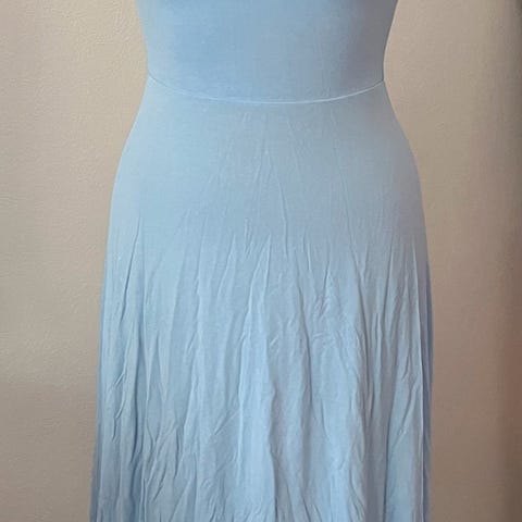 Kevyt vaaleansininen vyötäröltä sidottava polyesterimekko. Sopii hyvin kesäisiin juhliin ja arkeen. Ollut muutaman kerran käytössä.