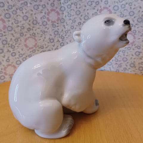 Vanha Lomonosovin pikku delfiini. Leima kulunut pois. Korkeus 10 cm