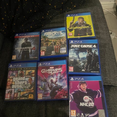 Myynnissä 4 PS4 peliä Fifa 16, Rocket League, MYYTY Crash Bandicoot N Sane Trilogy ja Star Wars Battlefront II. Hinta peleille on 5e per kpl.