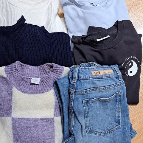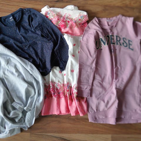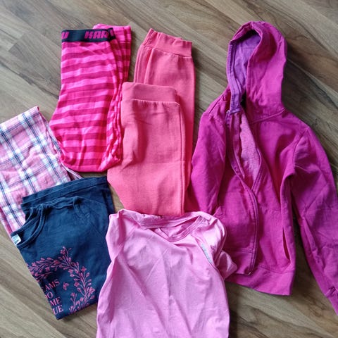Myydään todella hyväkuntoiset 146cm tytön vaatteet. Farkut ja kolme paitaa.