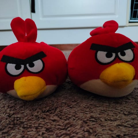 Siistikuntoinen Anrgy Birds tossut. Pohjan mitta ulkoa mitattuna n 25 cm. Kokomerkintä 38, mutta passelit jo pienempään jalkaan, eivät läpsy tai putoa pois.