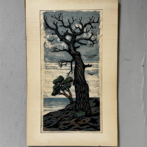 Ilppo Heikurin puupiirros, joka esittää kaupunkinäkymää. Teos on signeerattu ja numeroitu 1/20. Vuosi 1959 on merkitty teokseen, mikä viittaa sen valmistusajankohtaan. Kehystetty yksinkertaisella puukehyksellä, joka korostaa teoksen visuaalista ilmettä.