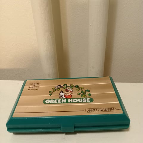 Nintendo Game & Watch pelikonsoli punaisella muovikuorella. Laite koostuu kahdesta näytöstä, ylä- ja alaosassa, joissa näkyy pelin grafiikka. Konsolissa on perinteiset ohjaimet ja painikkeet. Laitteessa näkyy käytön jälkiä ja kulumaa, mukaan lukien naarmuja ja pieniä halkeamia muovikuoressa. Konsoli toimii paristoilla ja kuuluu vanhempaan pelikonsolien kategoriaan. Klipsi rikki. Ei sisällä paristoja. Laite on täysin toimiva. Paristokotelon kansi puuttuu niin kuin näissä yleensä.