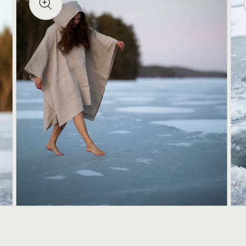 Jokipiin poncho, pellavaa. Ihanteellinen esim. avantouimarille. Reilu koko johon
