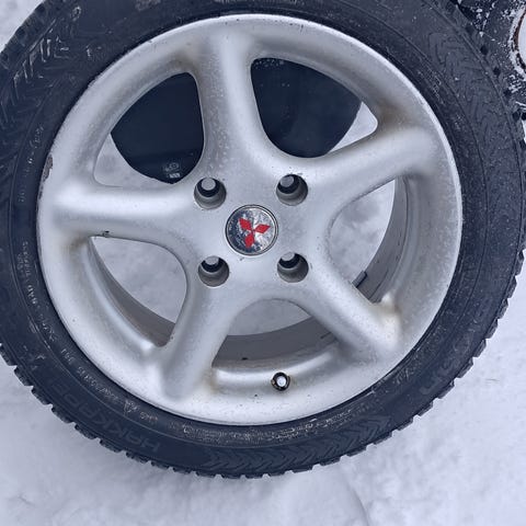 Myydään käytetyt nastarenkaat asennettuna.