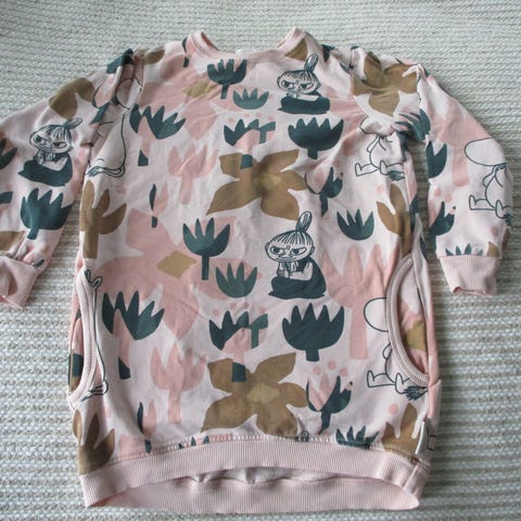 Muumi/ Moomin tunika taskuilla koko 104. Painettu Pikku Myy kuva. Hieman A- linjainen. Käytetty vain pari kertaa, uudenveroinen kunto.