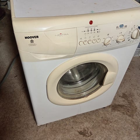 Käytetty ehjä pyykinpesukoneen hihna, purettu Hoover HN6125-89 S Nextra koneesta, hihna tyyppi 1233 J MAEL