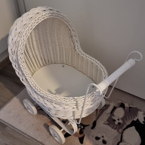 Retro nukenvaunut , pientä kulumaa ( ajan patinaa) toimivat jarrut. Nukkeleikkeihin tai koristeeksi.