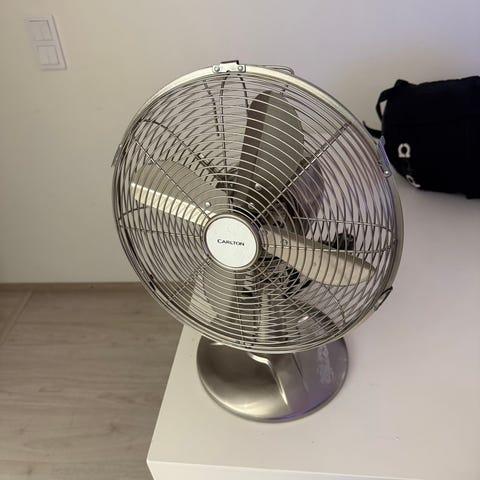 Suntec Vintage pöytätuuletin, jossa metallirunko ja metalliset siivet. Väri hopea. Sopii pöytäkäyttöön ja tarjoaa ilman kierrätystä pienissä tiloissa.