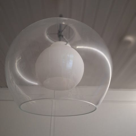 Lasinen valaisin, käytetty, lasin kork. 26cm (koko kork 28cm), halkasija 18cm