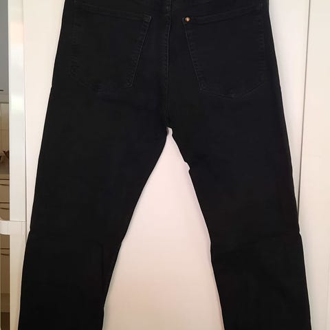 Miesten mustat farkut, koko M. Joustaa vähän. Kunto hyvä.