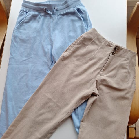 157 -merkkiset collegehousut. Harmaat ja vaaleansiniset. Nauhakuja vyötäröllä piilossa.